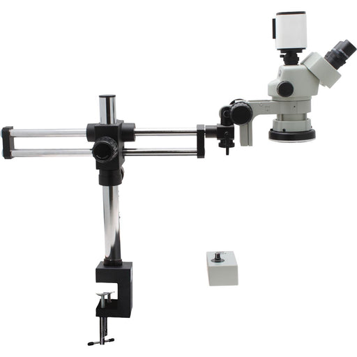 Aven ToolsStereo Zoom Trinocular Micrsocope SPZV-50 [6.7x-50x] on Double Arm Boom Stand, FOI with Mighty Cam Pro