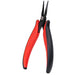 Serrated pointed, long nose pliers, with rounded external edges suitable for the handling of components in high density areas without causing damage.