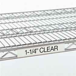 Clear, holds most commercial labels. The useable length of the label holder is 5" shorter than the shelf. Clear Label Holder, 1.25 tall for 18 inch shelf.